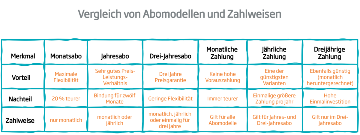 Praxis-Tipp: Für viele Unternehmen ist das Jahresabo der sinnvollste Mittelweg.