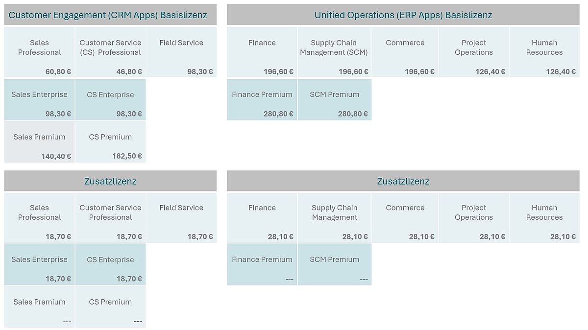 - Übersicht aller Preise im Dynamics 365 Preis- und Lizenzmodell