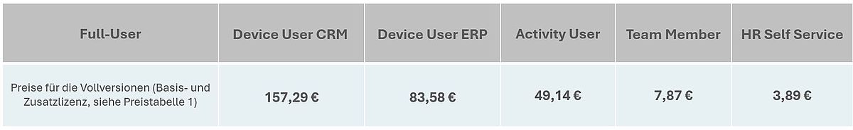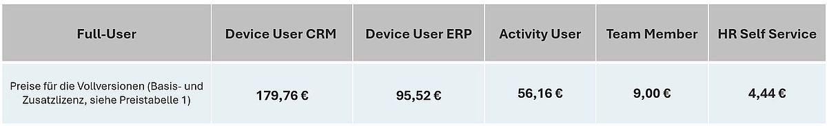 In der zweiten Preistabelle haben Sie ebenfalls schon gesehen, dass es für Dynamics 365 nicht nur „Vollnutzer“-Lizenzen gibt, sondern auch weitere User-Typen.