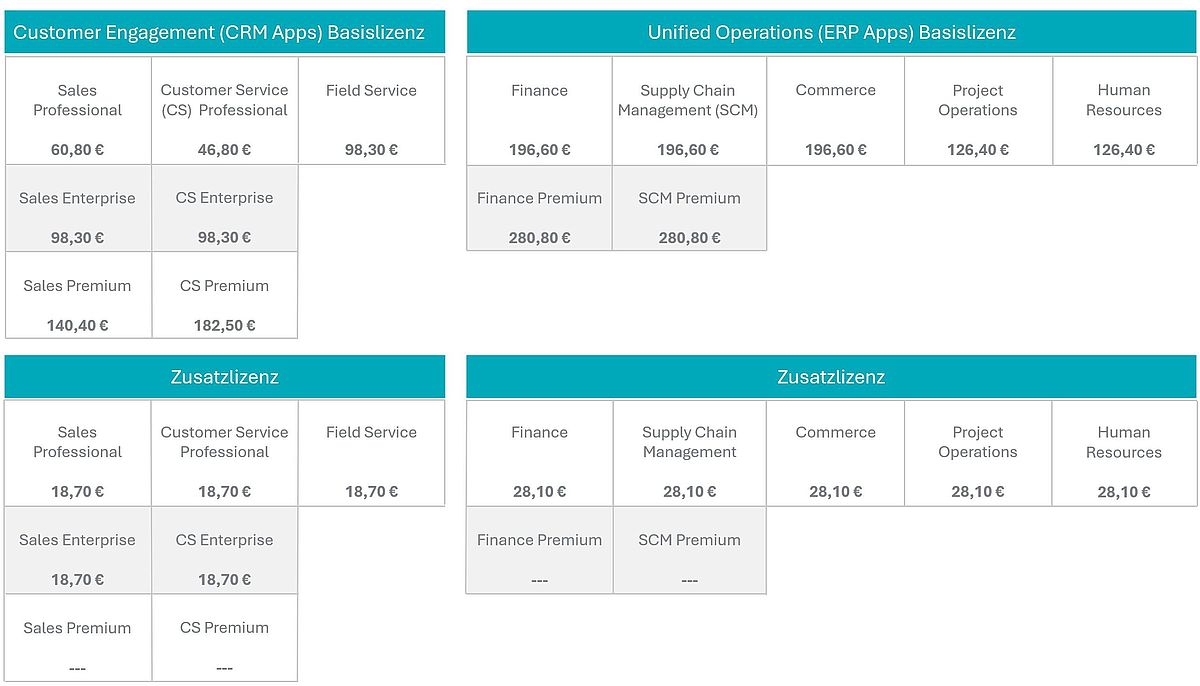- Übersicht der wichtigsten Preise im Dynamics 365 Preis- und Lizenzmodell